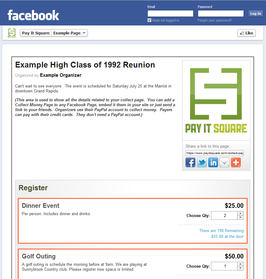 It's true! You can add any PayIt2 Collect Page to a Facebook Page as a tab!